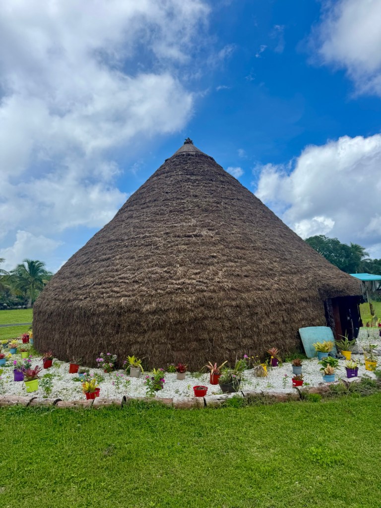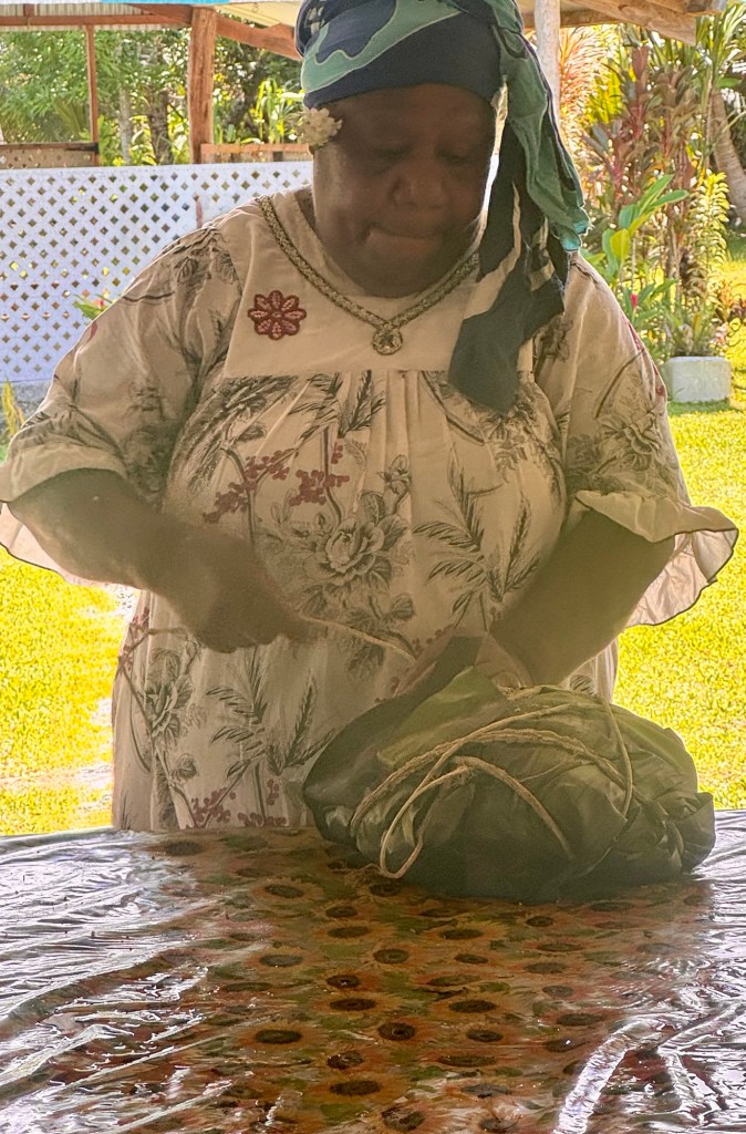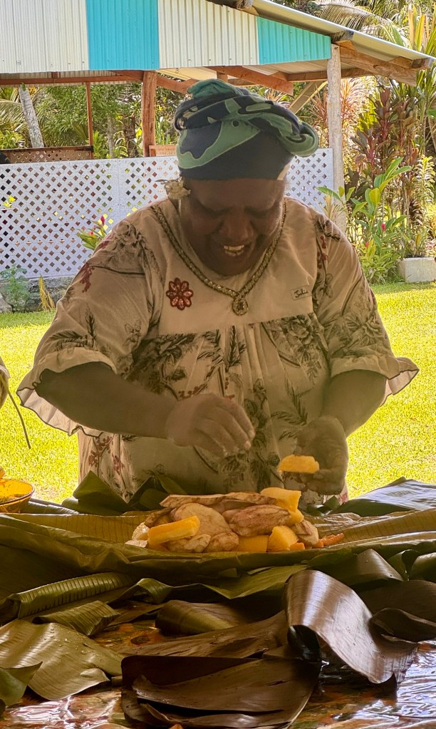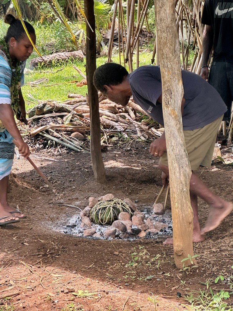 We then went to the tribe’s outdoor living area where they cook their food and have their open air community gatherings. We learned how they make their traditional meal of “bougna”.