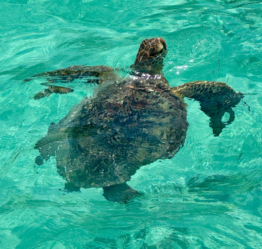 After the tour, we took the van back to the port. As we were walking down the pier we saw a cute turtle pop his head out of the water. We then took the tender back to the ship and it was a little rocky with some rough waves.