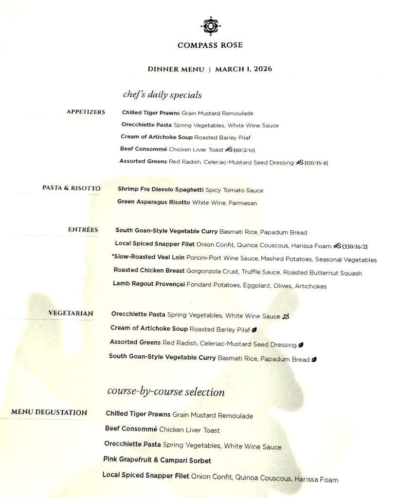 After the show we had dinner with our friends Debbie and Wallace in Compass Rose. They’re from Florida and this is their first Regent cruise (and they’re on for the whole world cruise!). We love Regent but not sure we’d take them for a world cruise having never sailed on them before. But they love Regent too and are ready to book another one!