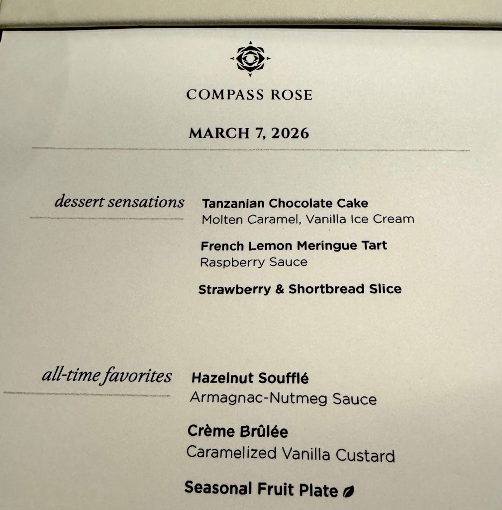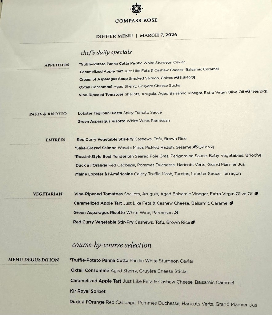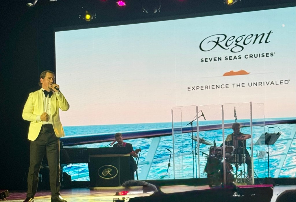 Hi Again Gang! We had another stellar night on Regent. We started off with the Captain’s Welcome Reception. The Captain introduced all of his senior officers, a couple of which were new.