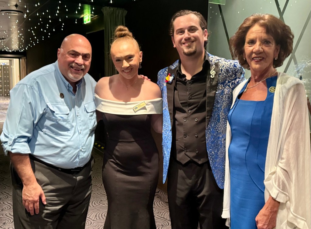 After dinner, we went to the one man show of our good friend and Regent Head Singer, Lachlan Griffith. He’s from Australia and his show was called “Broadway Downunda”. He sang lots of Broadway hits with a nod to Australia that he tied into key moments along his career path. It was a fantastic show! A nice bonus was that his parents (and his girlfriend Isma, a Regent lead singer we’ve also gotten to know well) were in the audience and had to be so proud!