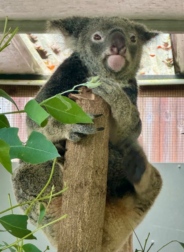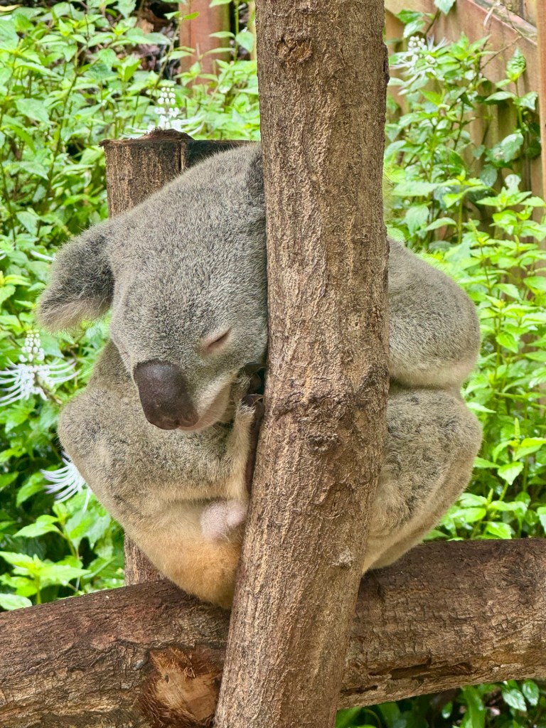 We walked around there for a while, did a little shopping but spent most of our time at the Koala Sanctuary. Those little buggers are so cute. They say they sleep a lot but when we were there they were quite active. But we did catch one taking a nap!