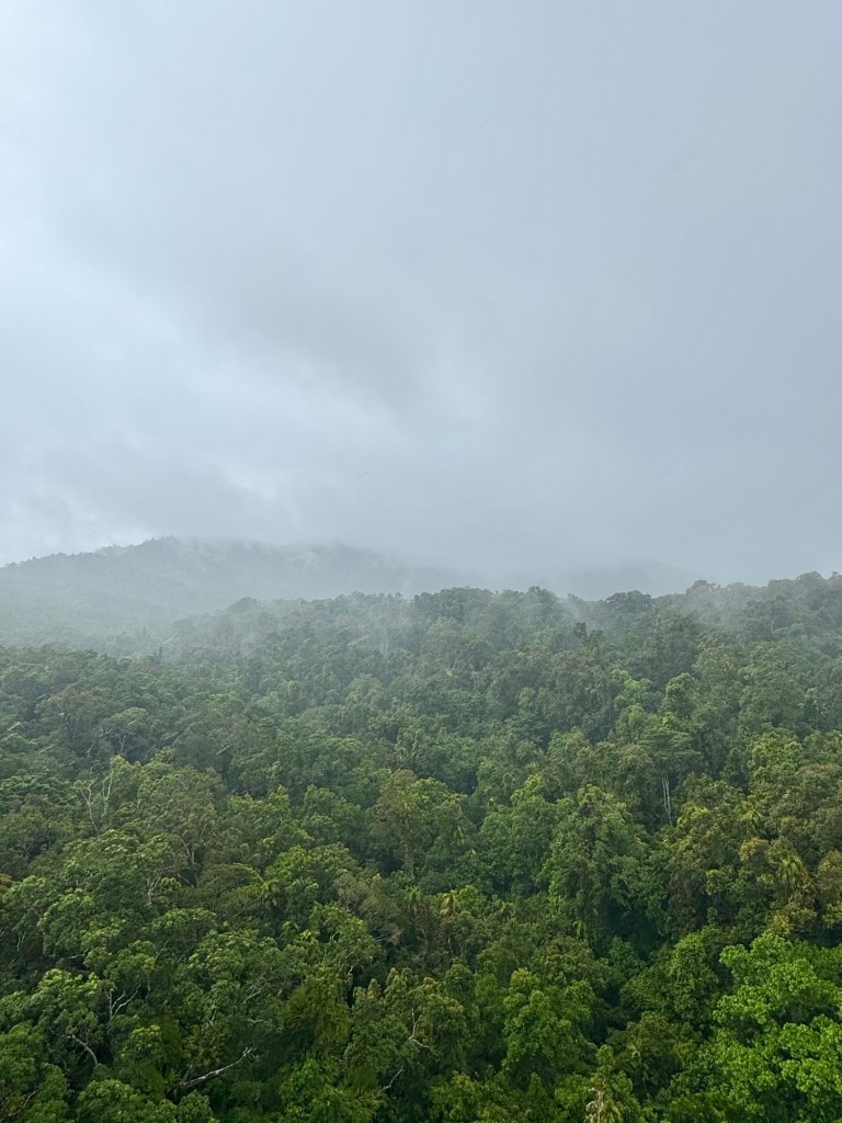 We then boarded the Sky Rail which took us over the Barron Gorge National Park and Rain Forest to a height of 1,800 feet. We saw the Barron Falls waterfall, lots of dense rain forest and the wispy fog around the mountains. Just glad that cable car didn’t drop!