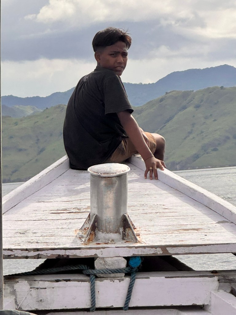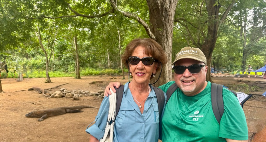 Hi Gang! Today we were anchored off Komodo Island in Indonesia. The word of the day is WOW! Between the huge Komodo Dragons (the world’s largest lizard that can grow up to 10 feet long and over 300 pounds!) and the beautiful pink sand beach we went to, it was definitely a WOW day.