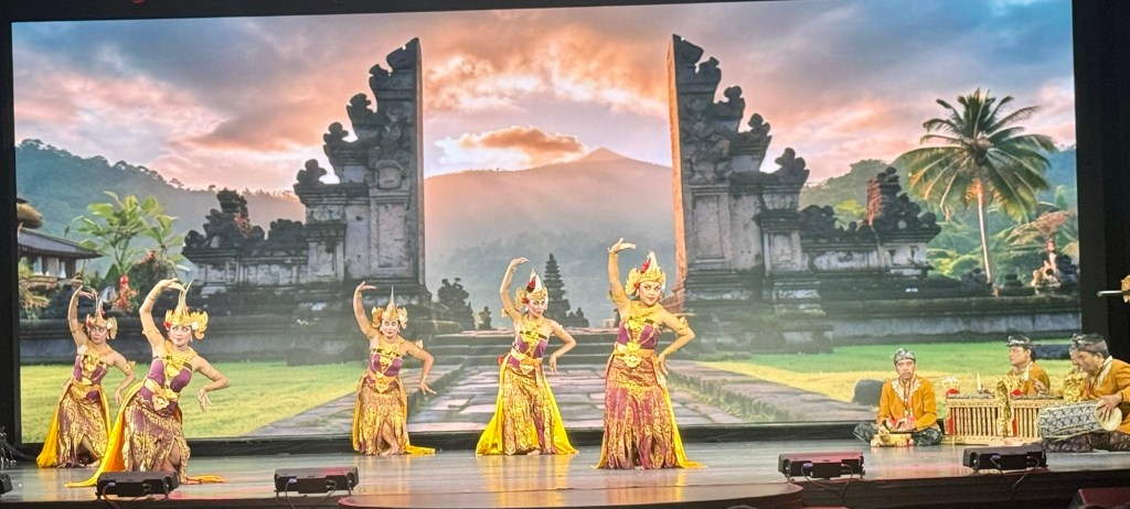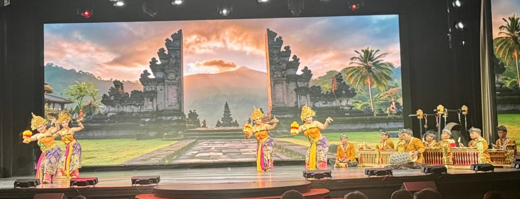 Hi Again All! We had another great night on Regent. They had a 5:45 PM Pre-Dinner show of the local Balinese people doing their traditional dances. Their costumes are so elaborate as is their make up and facial expressions. They did 4 different dances and all were unique in and of themselves. We’ve really enjoyed Bali and will hate to leave!