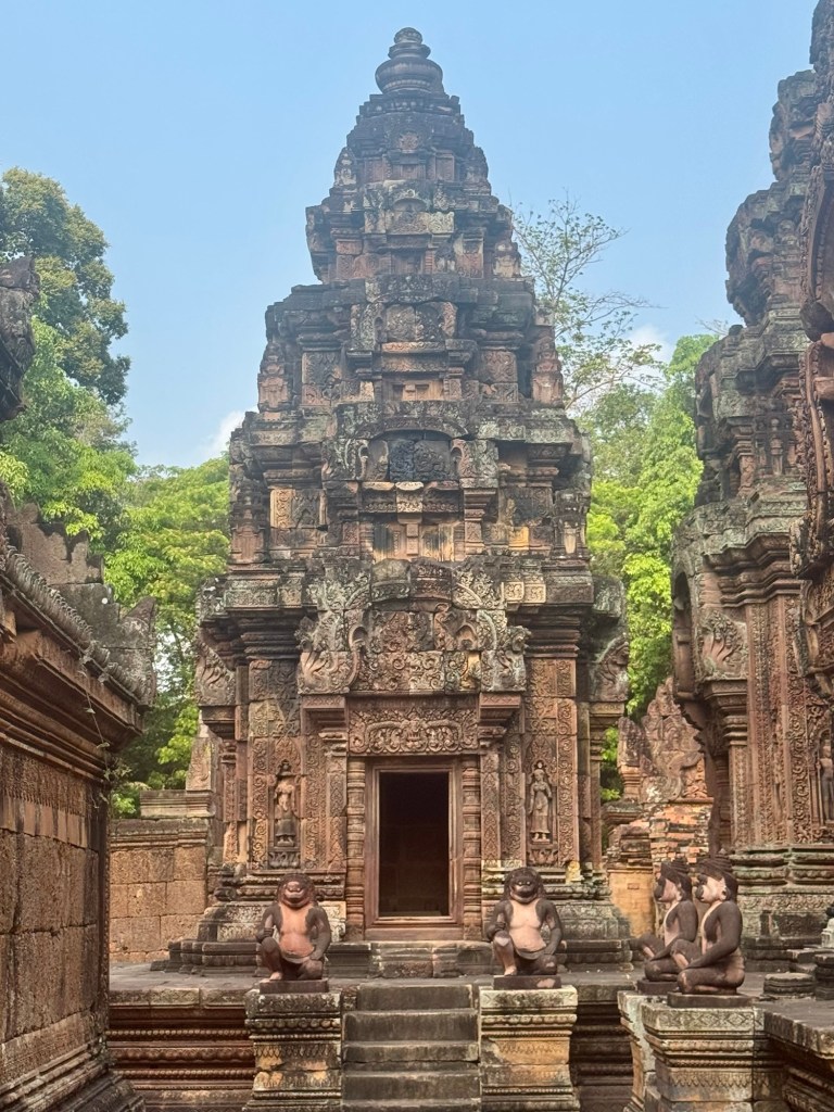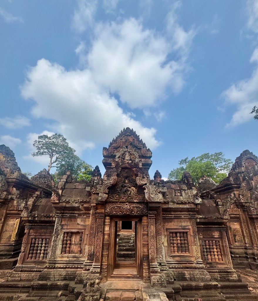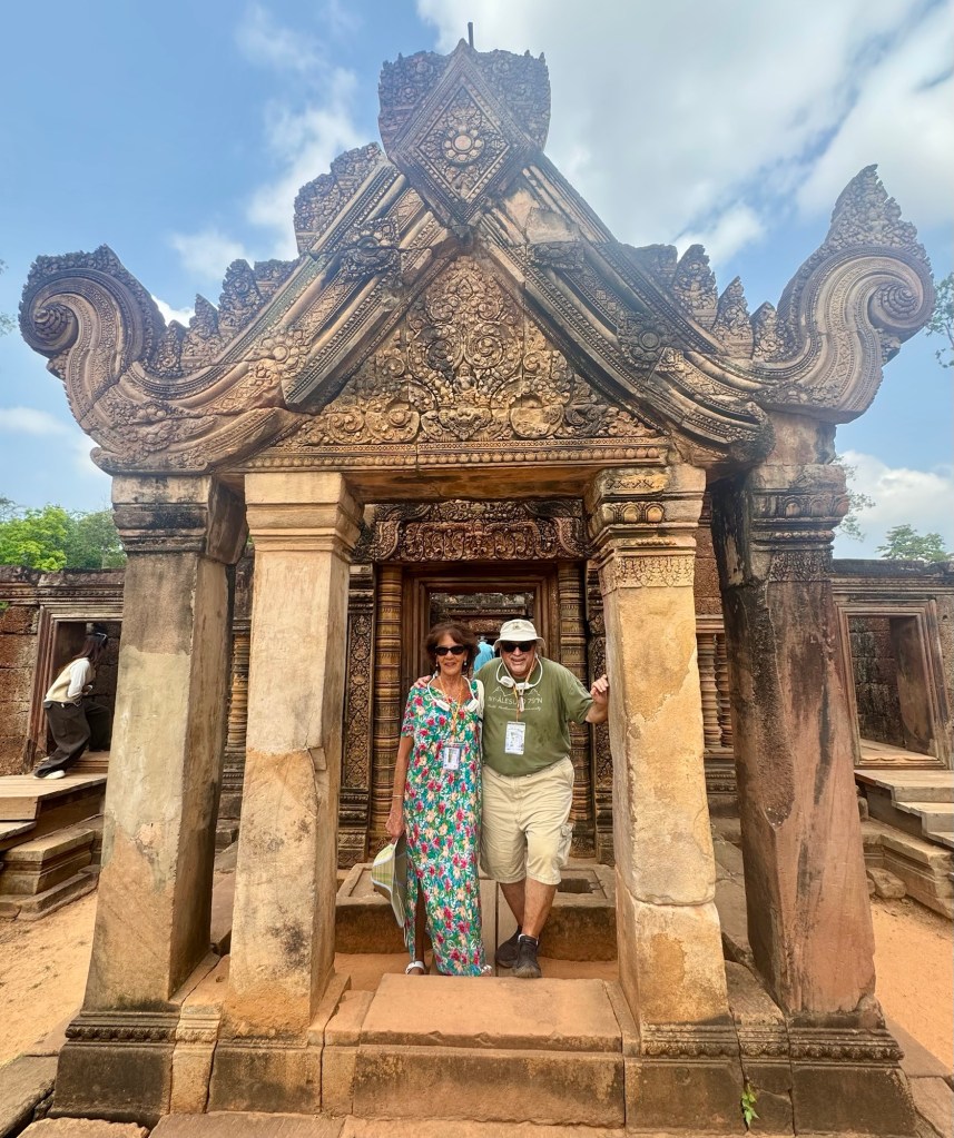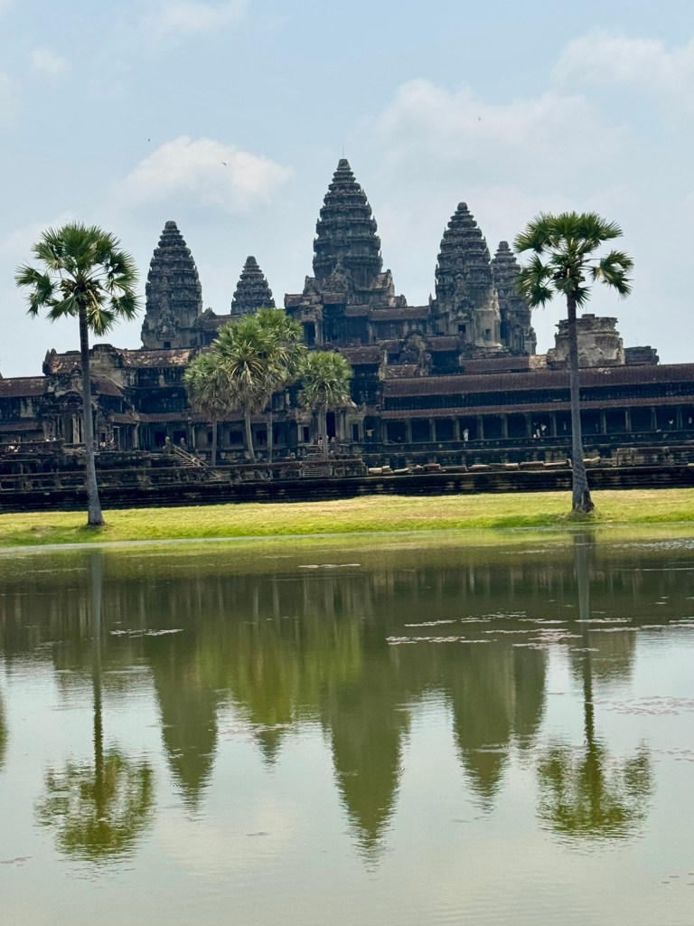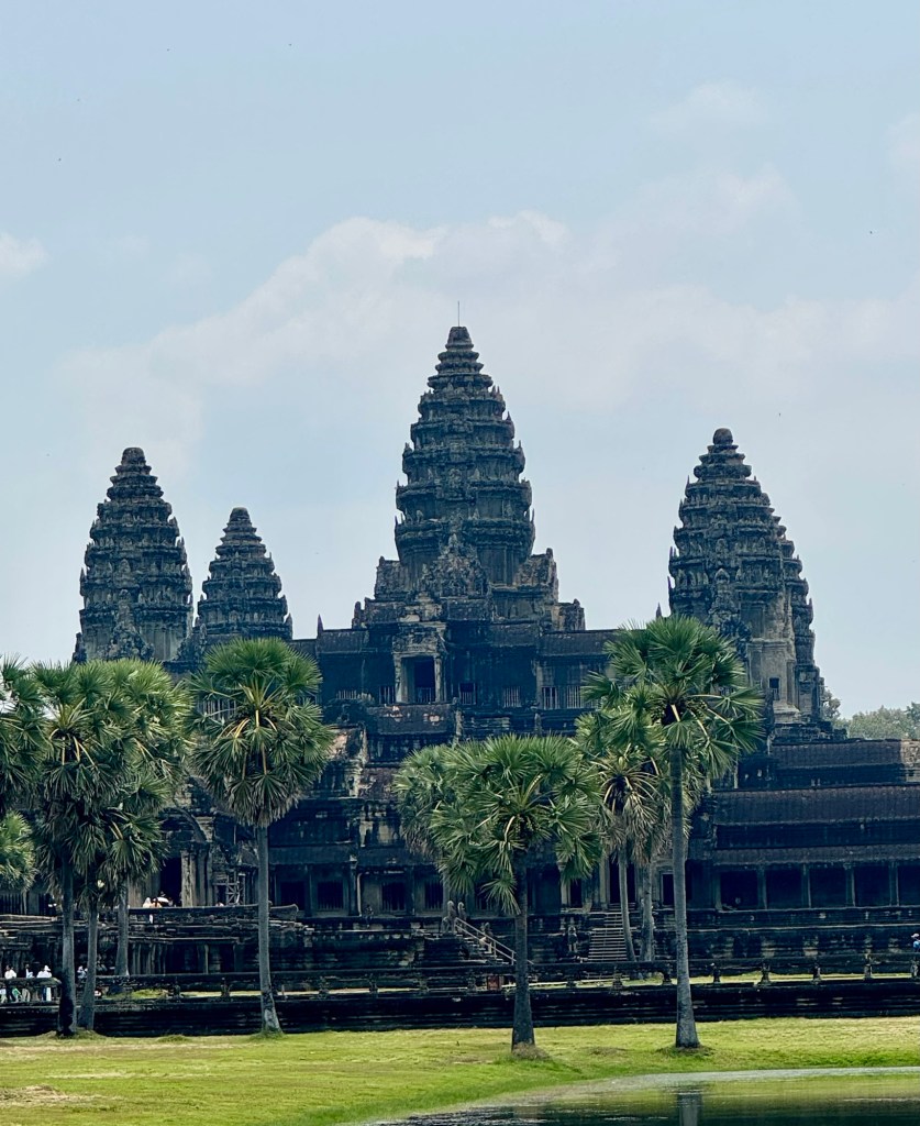 Hi All! Today was a triple WOW day! The biggest WOW was Angkor Wat. Such haunting architecture. It was built for King Suryavaman II in the early 12th century as his state temple and capital city. It was first Hindu, dedicated to the god Vishnu, but it’s now Buddhist.