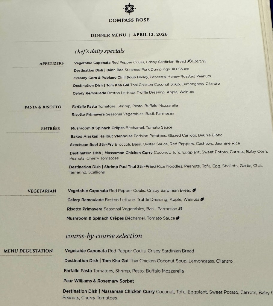 After the Block Party, we had dinner back in Compass Rose at our normal table with our favorite waiter, Dennis. Due to our tour today I didn’t have lunch so I was hungry (ya know on a cruise, you can’t miss a meal! Lol).