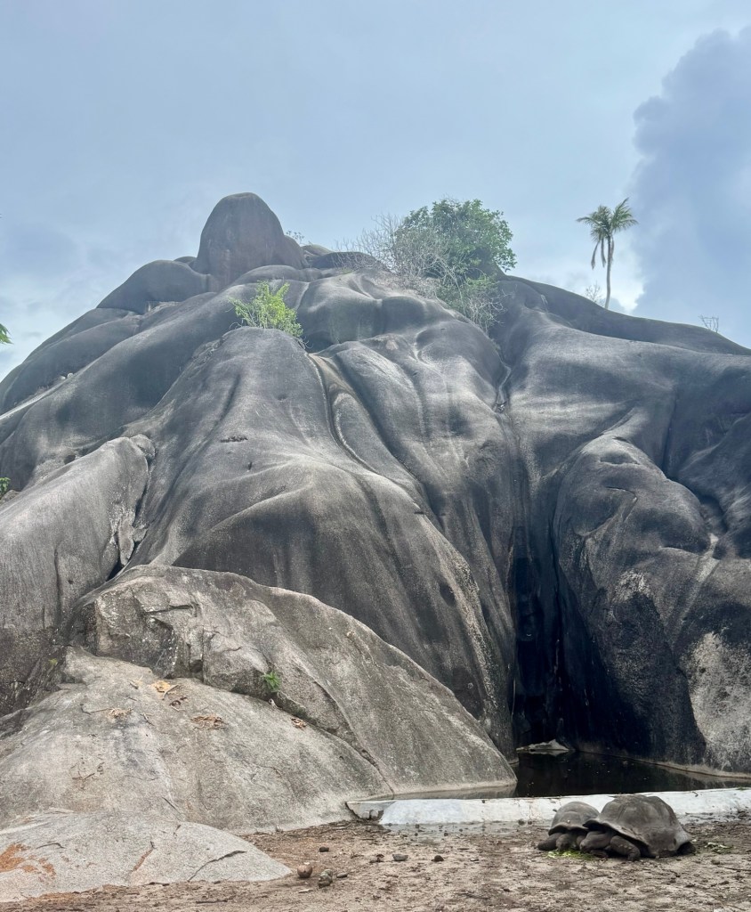 Our excursion today from Praslin was called “La Digue Highlights”. We started with a tender boat ride to Praslin then took a ferry to the island of La Digue which is the 4th largest island of The Seychelles. We took an open air truck to L’Union Estate for a glimpse into the by gone days of plantation life. They showed how they use coconuts to make coconut milk and oil.