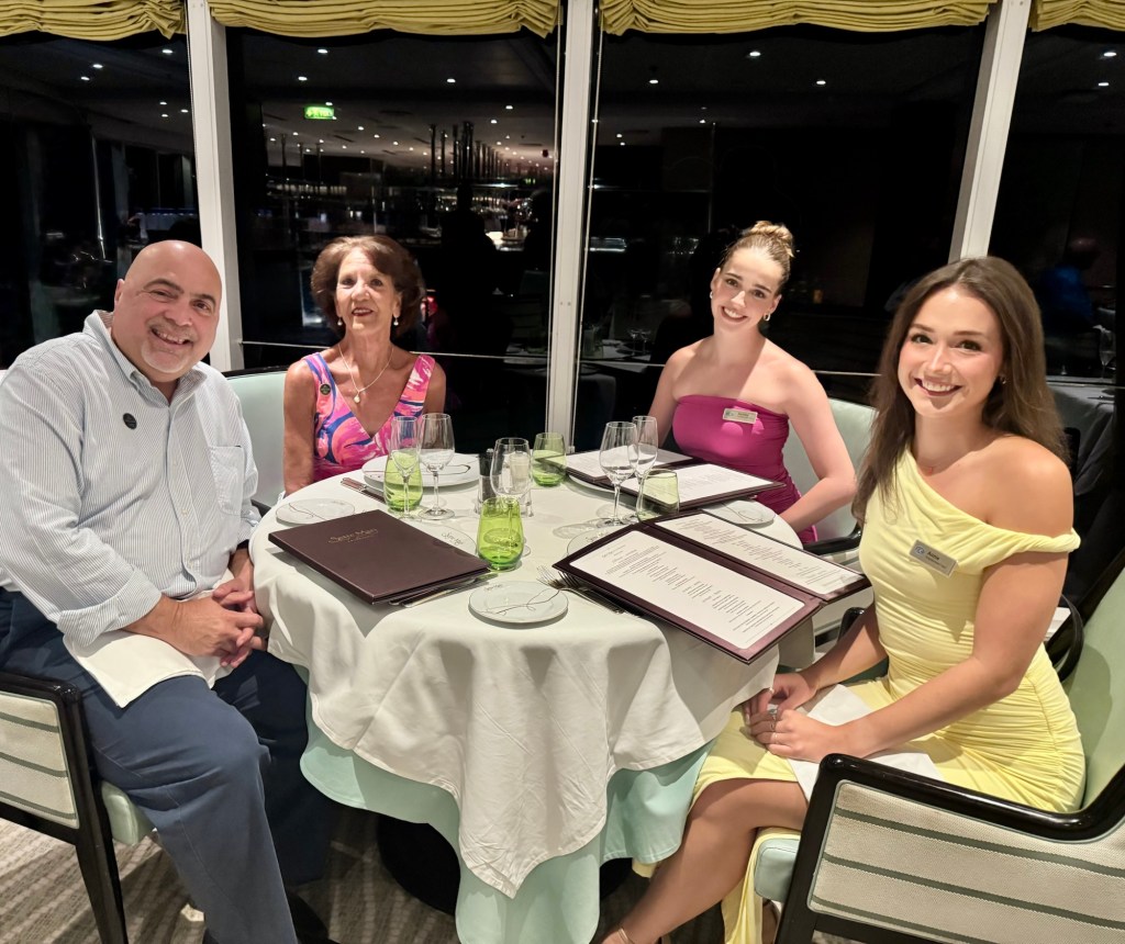 We then went to dinner tonight with two of our good friends from the Entertainment Team, Annie and Ashley. Annie is one of the lead singers and Ashley is a singer/dancer. Annie is from Virginia and Ashley is from Australia. As you can see, they are both beautiful people but are also beautiful on the inside!